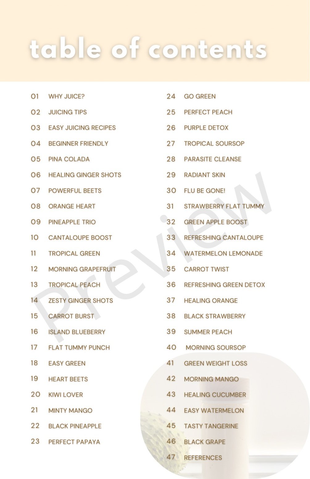 Juicing + Recipe Guide Vol.3$12$12https://schema.org/InStockusdJuiceWithKeyaJuiceWithKeya4 ratingsI want this!125 salesPages52Size23.7 MBLength52 pagesAdd to wishlist New wishlistShareShare on XShare on Facebook Copy linkCopy product URLRatings5(4 ratings)455 stars100%4 stars0%3 stars0%2 stars0%1 star0%
